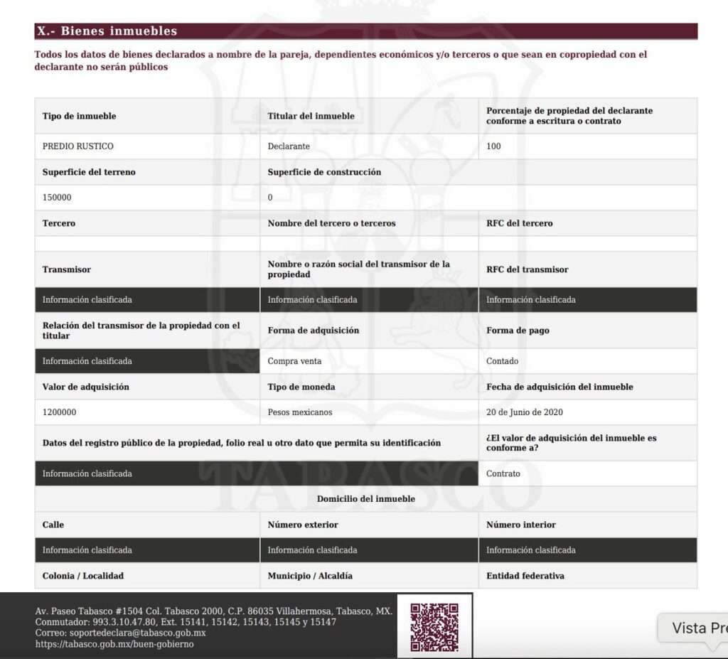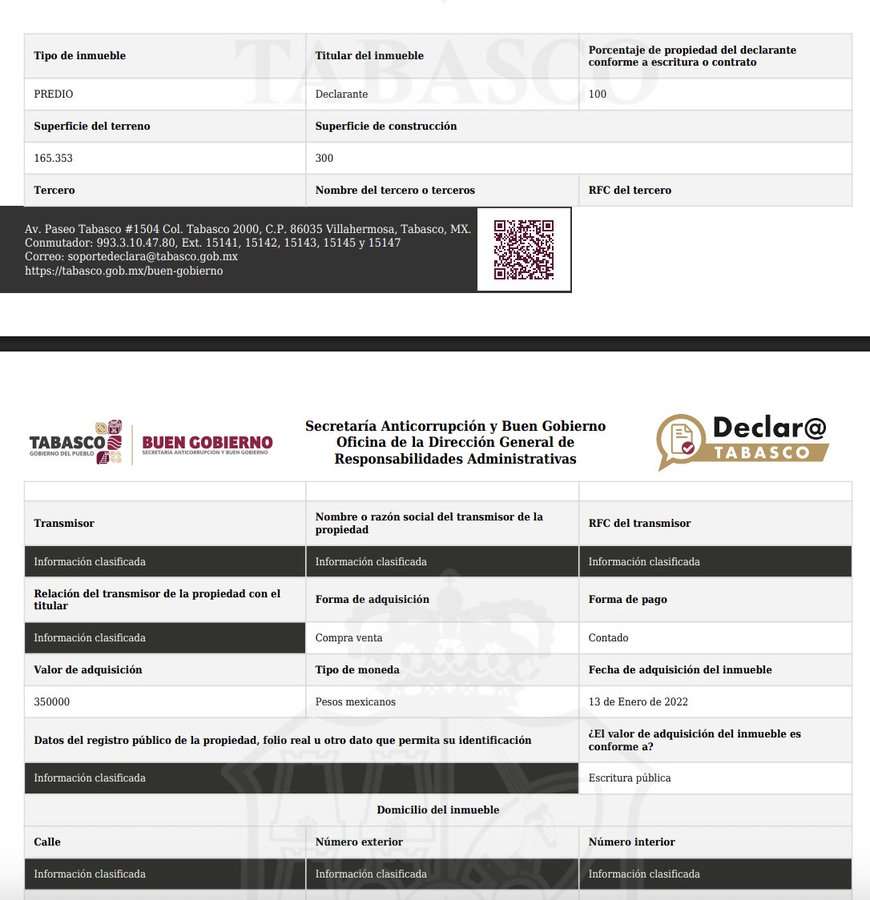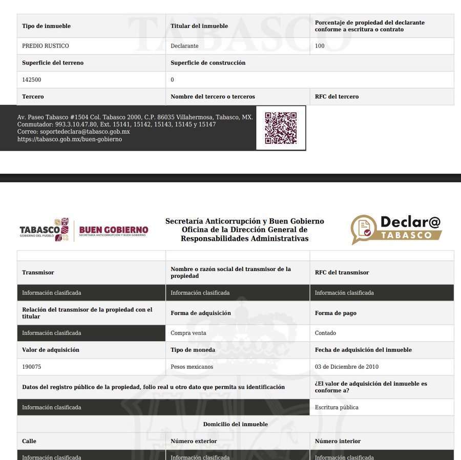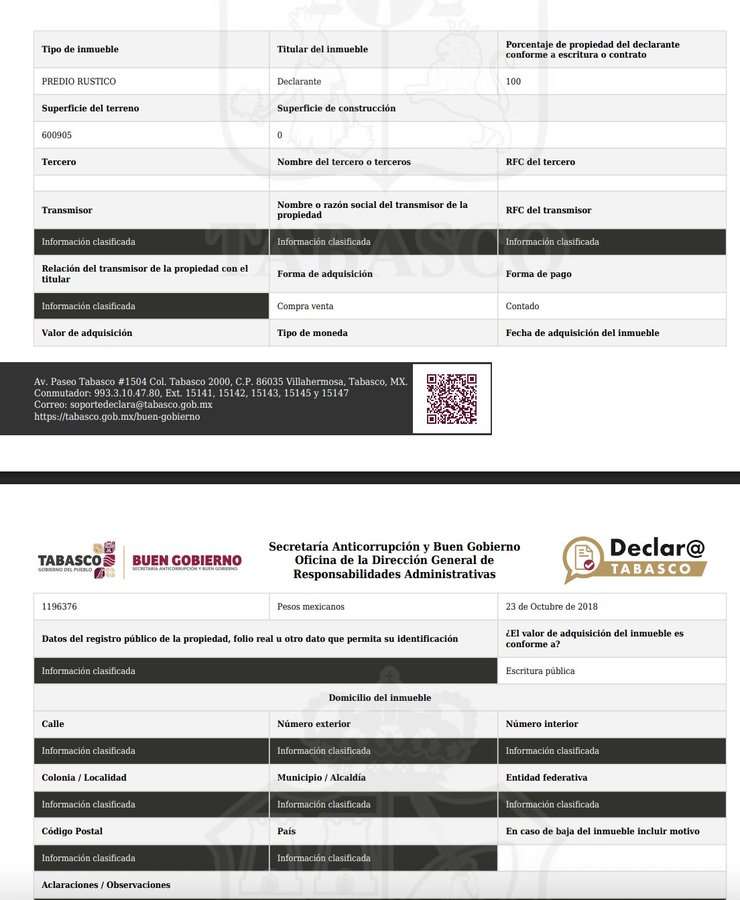 La mayoría de estas propiedades fueron adquiridas durante el sexenio presidencial de su hermano (2018-2024), pagadas al contado y en efectivo, en un total de 10 millones 423 mil 226 pesos.