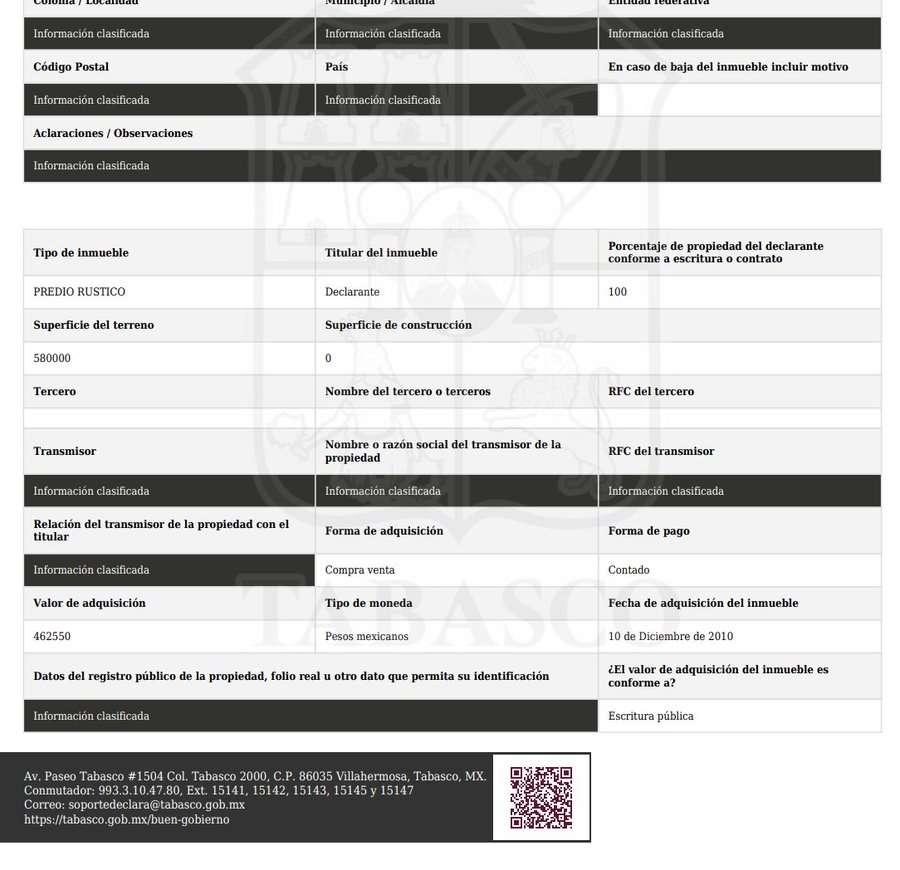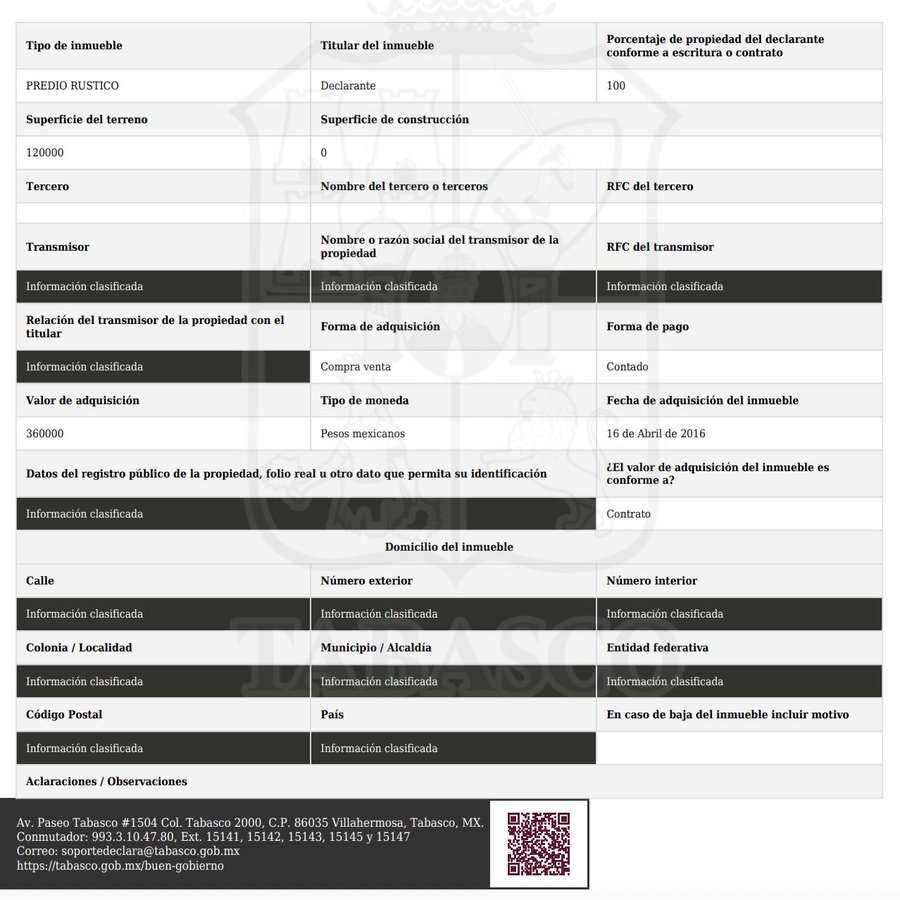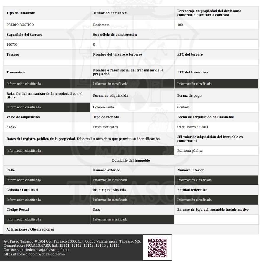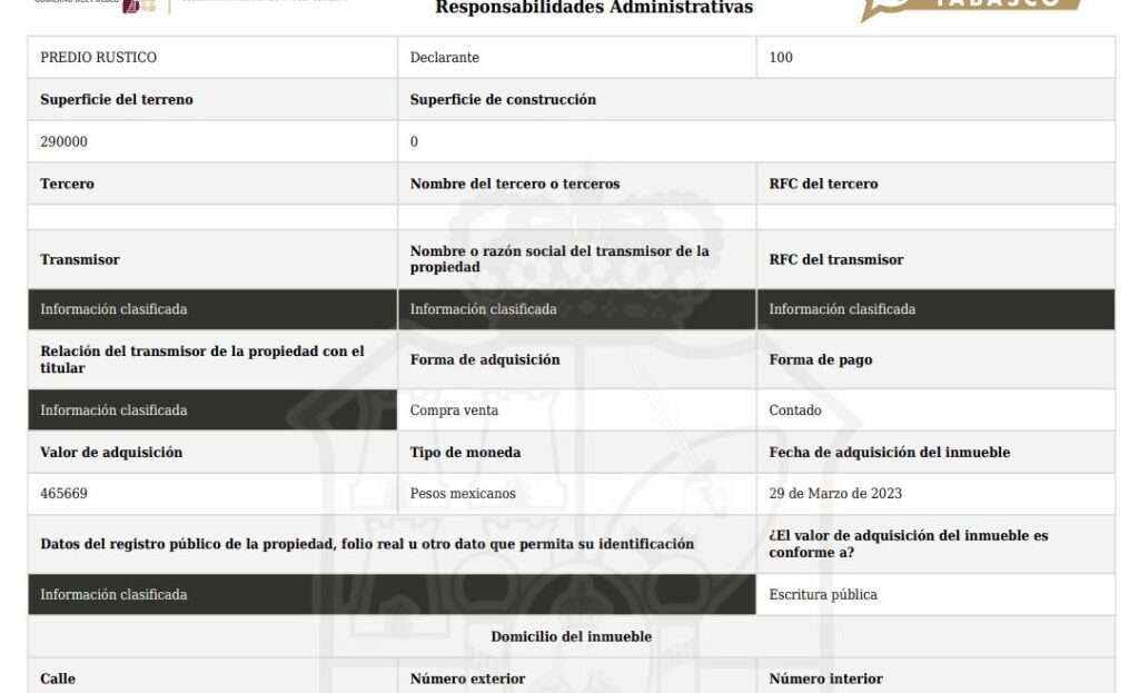 La mayoría de estas propiedades fueron adquiridas durante el sexenio presidencial de su hermano (2018-2024), pagadas al contado y en efectivo, en un total de 10 millones 423 mil 226 pesos.